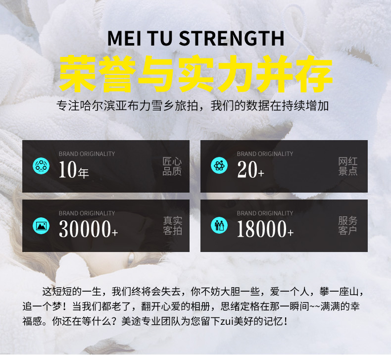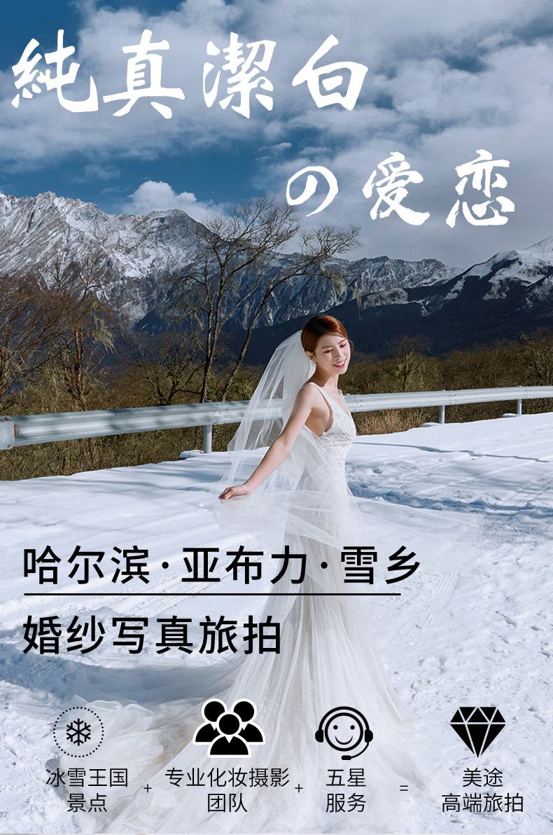 哈尔滨雪乡亚布力婚纱旅拍连续三年网络销量第一 无隐形消费 不满意重拍 高端定制 专业团队 匠心服务 赠送微电影 豪华大礼包 详情咨询客服